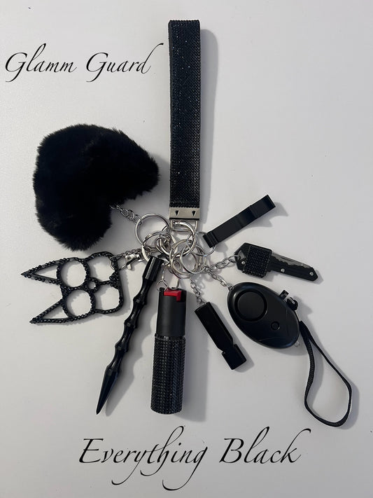 Glamm Guard: Stylish Safety Everything Black- Safety Keychain Set 🖤Black Bling Strap 🖤Black Bottle Opener...